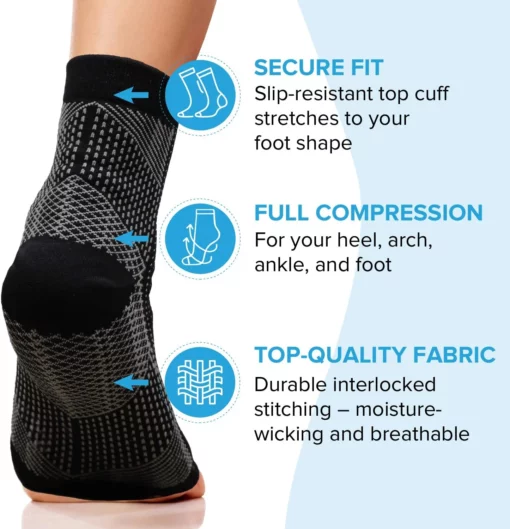 Support: The supportive features of socks help stabilize the feet, reducing wobbling and instability. This can lower the risk of falls, especially for older individuals and those whose neuropathy symptoms affect their balance.