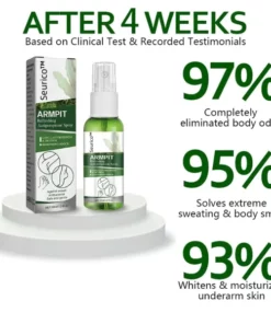 Simply apply the Seurico™ Spray under your arms. It fixes nerve issues in your sweat glands, stops them from producing unpleasant odors, and reduces swelling that causes excessive sweating.