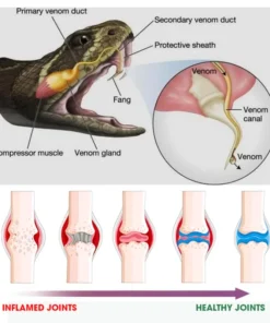 When applied to the skin, Snake venom can interact with receptors involved in pain perception and inflammation. This interaction can lead to modulation of inflammatory pathways, potentially reducing the release of pro-inflammatory molecules that contribute to swelling of joints and bones.