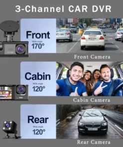 It captures a wide-angle view of 170° upfront, and 120° each for the cabin and rear, providing professional drivers like taxi and delivery drivers with superior monitoring and recording capabilities.