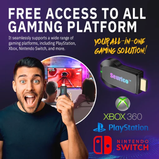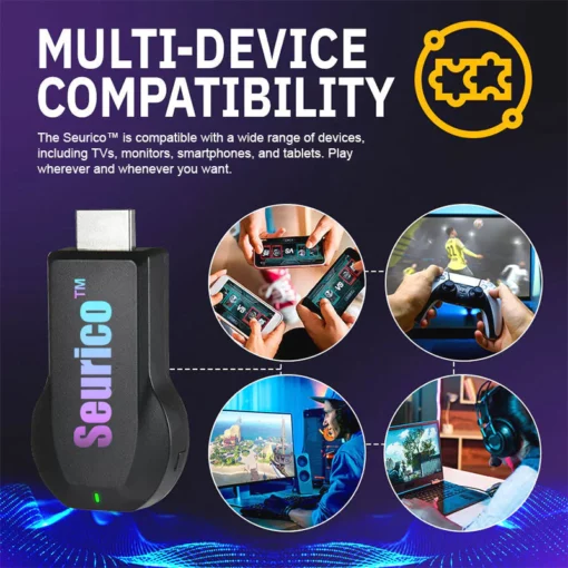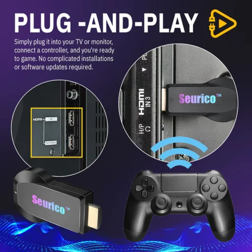 - 🎮 Easy Plug & Play: Connect the Seurico™ to your TV, monitor, or mobile device with ease. No complicated setup, no mess of wires – just plug in, seamless gaming.