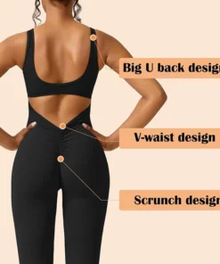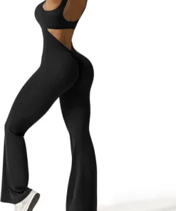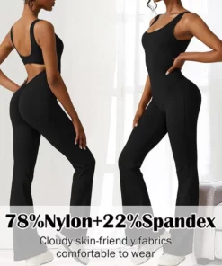 Our sexy open back flared Jumpsuits is made of soft seamless fabric (95% polyester+5% spandex ), lightweight, buttery soft, stretchy, breathable,moisture-wicking, quick drying, smooth, non see through and skin-friendly, very comfy to wear, just like your secondskin
