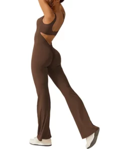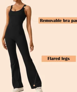 Scrunch butt long flare pants jumpsuits enhancing your body natural sexy shape, just like a juicy peach, gusseted crotch for greater freedom of movement and flexibility, squat proof athletic jumpsuit,the design of micro-flare pants can make you look taller and slender