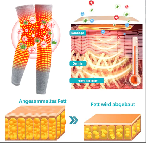 Auch wenn Sie nicht regelmäßig Sport treiben und eine unausgewogene Ernährung haben, kann Ihnen unsere Sfrcord™ Radiofrequenz-Kräuter-Thermo-Kniebandage immer noch dabei helfen, Ihre Abnehmziele zu erreichen. 80% der Radiofrequenztherapie können Ihnen dabei helfen, Ihr Wunschgewicht zu erreichen. Diese Kniebandage hilft dabei, den Stoffwechsel zu steigern, das lymphatische System anzuregen, zu entgiften und angesammelte Fettdepots und Schwellungen zu beseitigen. Der fettverbrennende Stoff mit Turmalin metabolisiert Fett effizient, sodass Sie Fett verbrennen können, während Sie schlafen, arbeiten oder trainieren und dabei über Nacht die perfekten Körperkurven formen!