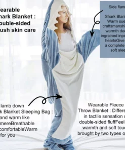 Imagine if a blanket had a baby with a Shark – meet the Sharkie! It’s a blanket, a sleeping bag and a hilarious Shark costume. Easy to clean – hand washable or gentle machine wash. Made of super cosy flannel fleece fabric.