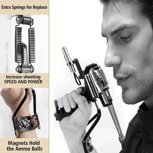 Equipped with infrared lighting device and dual spring design, it is easy to aim at night. This is a professional hunting tool that conforms to ergonomics, with a stronger grip, higher accuracy, and faster speed.