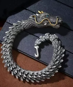 Dragon is commonly found on ornaments. It is like to perform a dragon dance when you wave your hand with the Dragon Bracelet. The Silver Dragon Bracelet is a gorgeous ornament and at the same time a talisman to bring luck and protection.