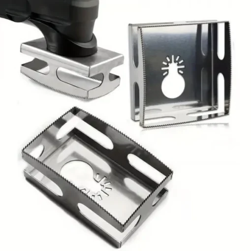 This tool is compatible with Dewalt and Milwaukee oscillating multi-tools, making it a perfect choice for professionals and DIY enthusiasts alike. Ideal for anyone who needs to cut single gang rectangular holes in drywall for wall boxes, it simplifies the task and ensures a perfect fit every time.