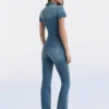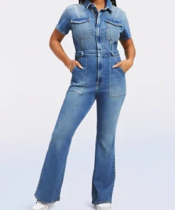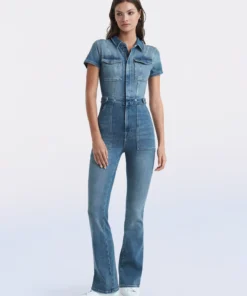 The skinny fit of the jumpsuit accentuates your figure, it snaps at waist with high recovery denim for all day support. It will hug your body closer, shape and lift the butt more.
