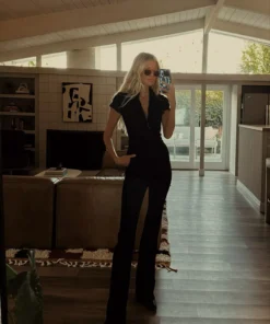 We updated this look with a bootcut flare for that ultra 70’s feel. The bootcut style adds a touch of retro charm, the jumpsuit is the ultimate one-and-done look, and ready-to-flaunt retro *flare*, while creating a sleek and elongating effect.