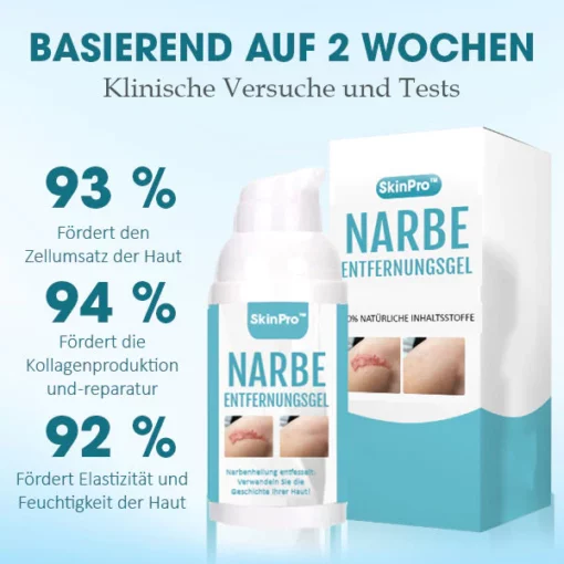 SkinPro™ Narbe Entfernungsgel verfolgt einen vielschichtigen Ansatz zur Förderung der Narbenheilung, der auf fortschrittlichen wissenschaftlichen Prinzipien und wichtigen Inhaltsstoffen zur Optimierung der natürlichen Regenerationsprozesse der Haut beruht. Hier finden Sie eine detaillierte Erklärung, wie dieses Gel funktioniert:
