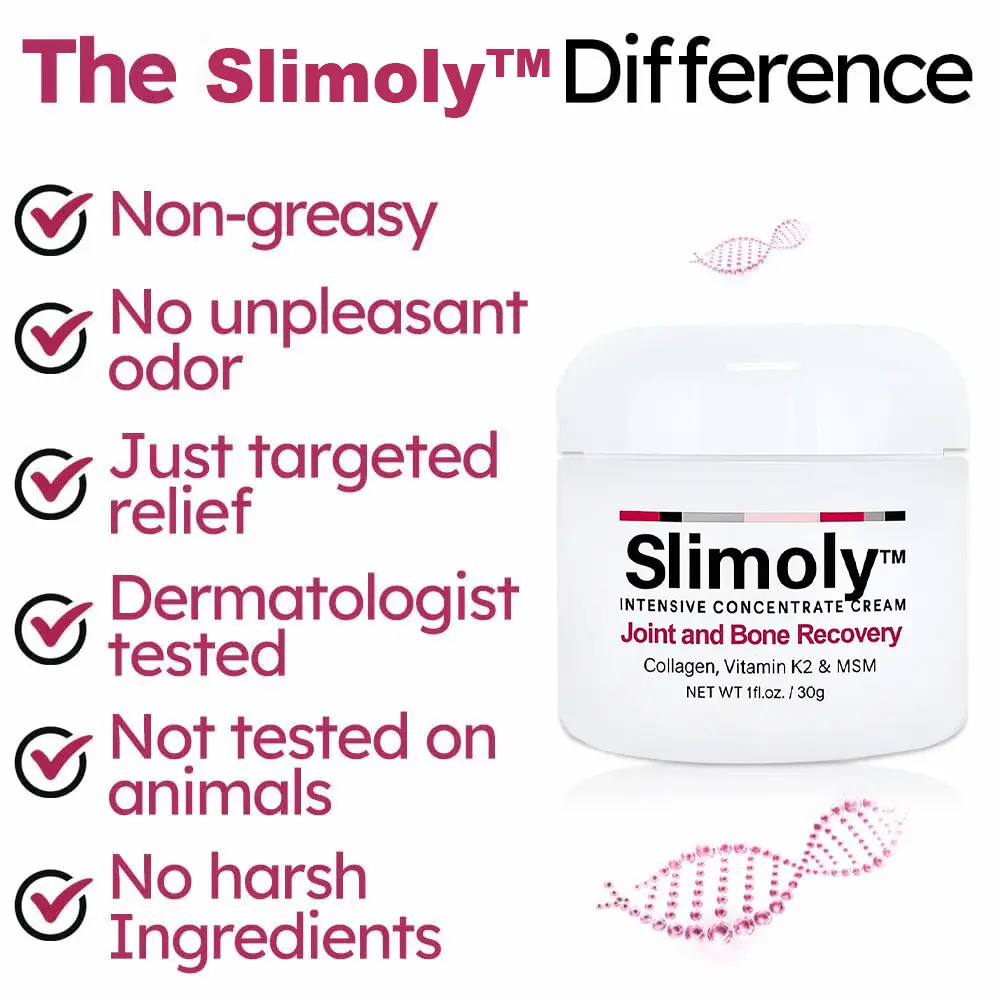 - Apply a generous amount of Slimoly™ Joint & Bone Therapy Cream to the affected area.