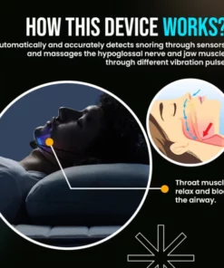 - Sends a vibration through your jaw to stop snoring, enabling a peaceful night’s sleep