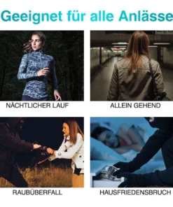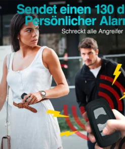 - Schrecken Sie Angreifer mit einem lauten Alarm ab!Drücken Sie die Taste, um einen 130-dB-Alarm zu aktivieren und den Alarm auszulösen, um Hilfe zu erhalten oder potenzielle Angreifer abzuwehren. Bleiben Sie sicher und geschützt mit einem Alarm, der jeden in der Nähe darauf aufmerksam macht, dass Sie Hilfe benötigen.