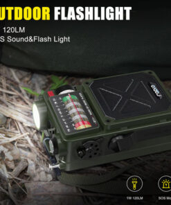 This compact emergency radio flashlight also includes a bright 120-lumen LED flashlight, SOS alarm signal, a reliable compass, and a power bank function to charge your phone or other devices. Be fully equipped for hurricanes, blackouts, camping, or any outdoor survival scenario.
