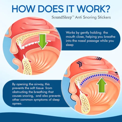 SoundSleep™ Anti Snoring Stickers work by addressing the underlying causes of snoring and promoting improved airflow during sleep.