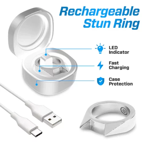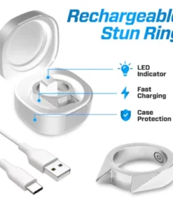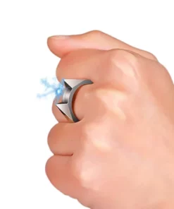 - Dieser Ring hat eine beeindruckendere Schlagkraft als die meisten größeren Betäubungsringe. Es kann bis zu 50.000.000 Volt Strom freisetzen. Ein einziges Antippen dieses Rings kann bei einem Angreifer Muskelkontraktionen auslösen und so eine abwehrende Wirkung haben. Stapeln Sie sie für zusätzliche Sicherheit – ohne Kompromisse bei Ihrem Stil. Eine ideale Möglichkeit, Ihrem Leben eine zusätzliche Ebene der Sicherheit zu verleihen.
