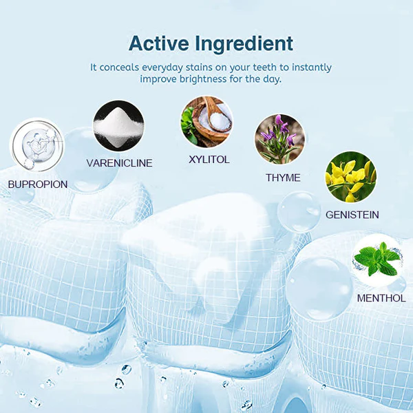 SPARKLE® Tooth QuitTablets contain cool ingredients such as mint, which can relieve the irritation of tobacco on the mouth and throat and reduce the desire to smoke. At the same time, SPARKLE® Tooth QuitTablets can also eliminate bad odor in the mouth and prevent bad breath after smoking, thus reducing the possibility of smoking again. The use of SPARKLE® Tooth QuitTablets can stimulate the sensory nerves in the mouth and throat and increase the moistness of the mouth and throat, helping to reduce the dryness of the throat and the feeling of thirst caused by smoking, and reduce the desire to smoke.