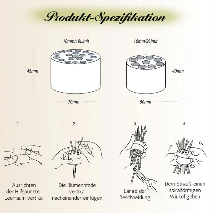 🌿 Stabil und zuverlässig: Aus hochwertigen Materialien gefertigt, bieten unsere Halter Stabilität und Halt für Ihre floralen Meisterwerke. Keine hängenden oder schlaffen Stiele mehr – Ihre Blumen werden stolz und aufrecht stehen.