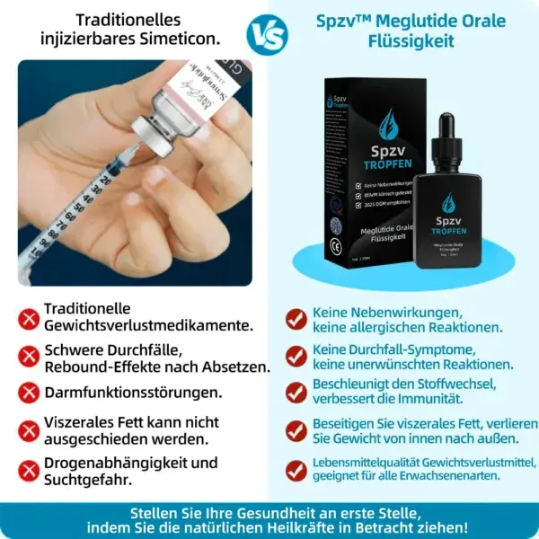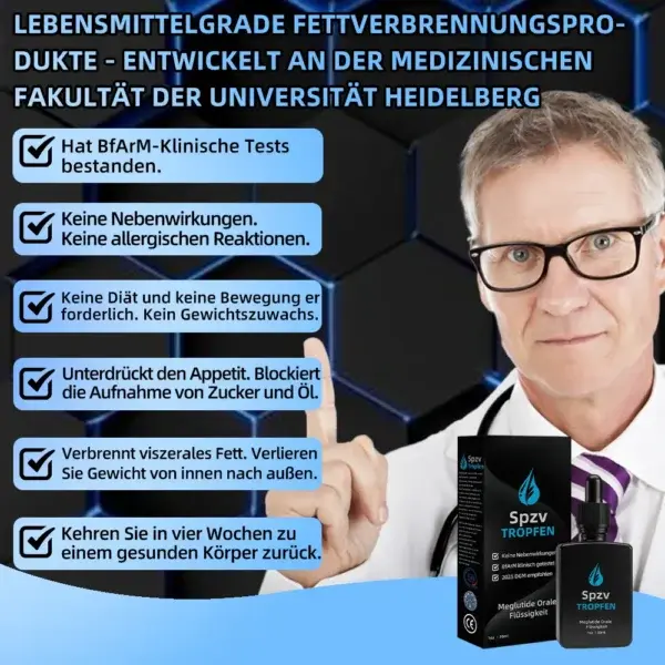 Es ist perfekt für jeden, der fettleibigkeitsbedingte Probleme angehen muss, und ich kann es absolut empfehlen. Eine Flasche der Spzv™ Meglutide Orale Flüssigkeit liefert mehr Vorteile als 15 Tage konsequentes Training. Dies ist ein brandneuer Durchbruch in der Behandlung von Fettleibigkeit weltweit!“ — Dr. Georg W. Ziegenhorn