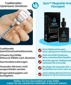 Die Spzv™ Meglutide Orale Flüssigkeit hilft beim Abnehmen, indem es den Appetit reduziert, den Stoffwechsel anregt und Fett verbrennt, ohne dass Diät oder Sport nötig sind.