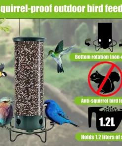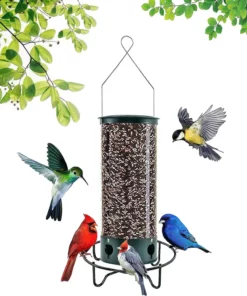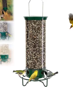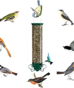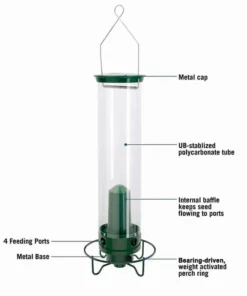 The feeder’s squirrel-proof design ensures less seed waste, which means money saved and fewer messes on the ground. Plus, the large 5 lb seed capacity ensures you won’t have to worry about birds emptying your feeder too quickly during peak feeding times. Convenient internal baffles also help to keep seed flowing freely to the ports as birds feed.