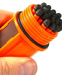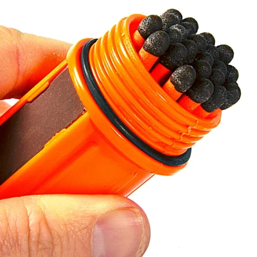 The Stormproof Match Kit includes 25 windproof and waterproof matches, 3 striker pins, and a matchbox that holds 20 matches.