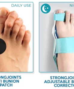 StrongJoints Adjustable Bunion Corrector are designed to straighten your big toe and return it to its natural position. The strategy behind bunion corrector is that forcing your toe back into its natural position will help it stay there even in the absence of the corrector. It’s adjustable and can be used while resting, sitting, or sleeping. Best use at night while sleeping.