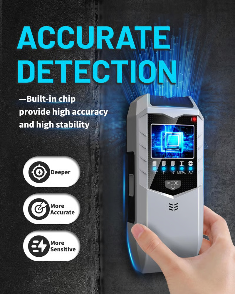 High Accuracy: Detects wood, metal, pipes, and live wires with precision.