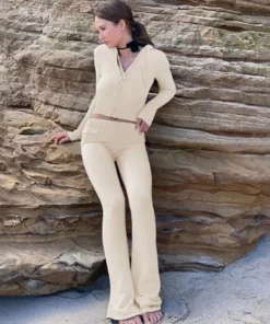 Indulge in luxurious comfort like never before with our Cozy Knit Tracksuit. Stay cozy all day with soft, ribbed fabric that hugs your body. Enjoy the perfect fit with our adjustable drawstring waist.