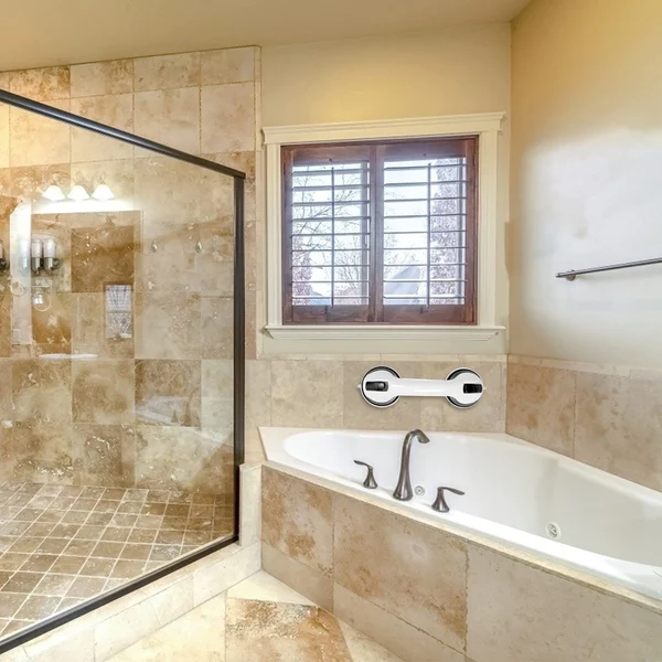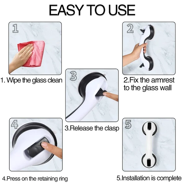 - Comfortable & Non Slip Grip – Two strong shower handle design works on any non-porous and flat surface, including tile, glass, acrylic and fiberglass. the grab bar provides additional stability when entering and exiting the tub or shower for comfortable experience.