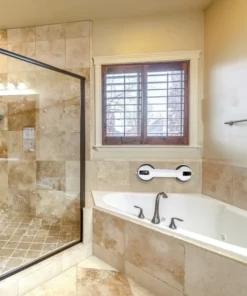 - Easy to Install – Shower handle is easy to install, no tools required and no drilling needed. Just flip the locking latches to secure bar in place. You can change its location according to your current need. The grab bar doesn’t harm the surface it’s on nor leaves marks when placed right.