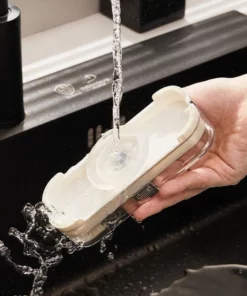 - It features a filter rack that’s perfect for storing dishwashing sponges, brushes, or other cleaning utensils. This means your cleaning tools are always within reach, yet neatly tucked away.