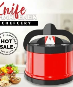 The CHEFCERY Knife Sharpener helps sharpen all types of knives, as quickly as just 3 swipes. It is designed with a strong suction cup and an ergonomic handle that works together to keep the sharpener in place. Wherever you go camping or island hopping, always have with you this compact and portable sharpener.