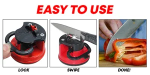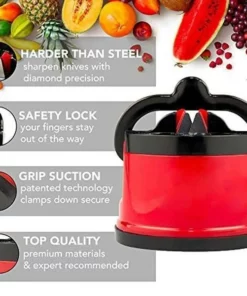 The strong suction cup keeps your sharpener in place and allows you to sharpen the knives with one hand only.