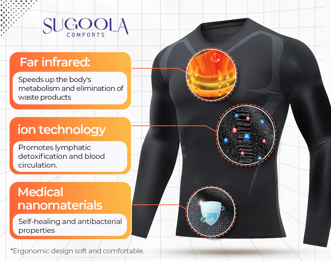 Zlepšite svoje držanie tela a zmiernite nepohodlie chrbta s pánskym turmalínovým magnetickým tielkom Sugoola™ s infračerveným žiarením. Toto tričko je precízne vyrobené tak, aby podporovalo lepšie držanie tela úpravou metabolizmu, znížením vnútornej telesnej teploty a súčasným zvýšením krvného obehu a hladiny kyslíka – to všetko vedie k zvýšeniu úrovne energie.