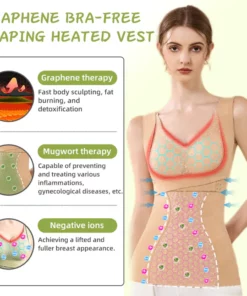 The Graphene Bra-Free Shaping Heated Vest utilizes massage properties and ion release to stimulate collagen production. This process helps tighten and lift sagging or deformed breasts, making loose skin and excess fat disappear.