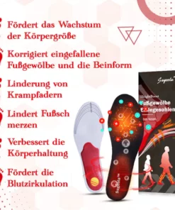 “Als Orthopäde bin ich von den Sugoola™ Höhenverstärkung Einlegesohlen beeindruckt. Diese kombinieren geschickt Infrarottherapie und Titanionentechnologie, um herausragende Fußunterstützung zu bieten. Das Design hilft nicht nur bei Plattfüßen, sondern fördert auch gesundes Knochenwachstum und bietet umfassende Unterstützung. Die Einlegesohlen bieten effektive und komfortable Hilfe für Fuß- und Knochengesundheit.”