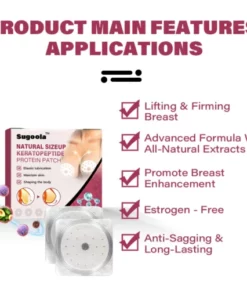 Sugoola Natural SizeUp Keratopeptide Protein Patch is not an estrogen and fat based enhancement product, but rather uses Type 3 Peptide Protein to achieve the desired effect. It is specially combined with a natural affinity with the body in peptide protein, which penetrates the glandular vesicles in just 5 minutes. This allows the dry glandular vesicles of the breast to instantly absorb nutrients and grow, and repair the cooper’s ligaments with strong elasticity.