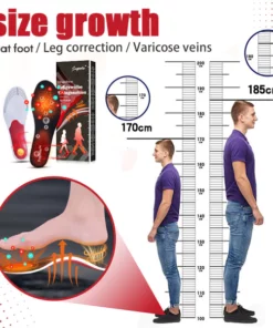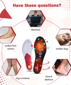 Sugoola™ Orthotic Arch Support Height Boost Insoles promote bone growth, improve height, and optimize foot mechanics. Through far infrared therapy and enhanced blood circulation, the supply of nutrients and oxygen to the bones is supported. The insoles address foot problems, correct foot misalignments, and contribute to the overall health of the skeleton. Targeted pressure points on the sole of the foot improve circulation, alleviate venous issues, and promote detoxification. A holistic solution for optimized body growth and improved movement health.