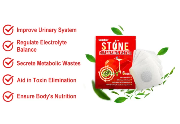 Sumifun™ Stone Cleansing Patch works by a transdermal process the active ingredients are delivered across the skin for systemic distribution, & it is absorbed slowly into the body’s bloodstream, which accelerates circulation, and detoxifies harmful toxins which affect kidney function.