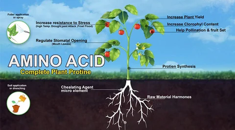 One of the nutrients that are essential for plants is Amino Acids. Amino acids are organic molecules that are part of proteins, playing a key role in most biological processes in plants. lt is the true building block of all proteins and is required by plants throughout all stages of growth are helpful when plants are under stress. Amino Acids are essential for plant growth, health, and function.