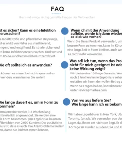 Verwenden Sie es täglich, ohne Unterbrechungen, um die endgültigen Ergebnisse nicht zu beeinträchtigen. Unseren Forschungsdaten und Kundenrückmeldungen zufolge werden die effektivsten Ergebnisse in der 5. Woche der Anwendung erzielt. Über 15.000 Kunden haben berichtet, dass es am besten ist, 5 oder mehr Sets auf einmal zu kaufen, um Unterbrechungen in der Anwendung aufgrund langer Liefer- und Logistikprozesse zwischen den Bestellungen zu vermeiden, die die Ergebnisse beeinträchtigen können.