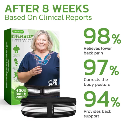 Specifically crafted for plus-size individuals with wider waists, the Suptruck™ Mugwortswrap Health Lower Back Pain Support Belt not only provides complete relief from lower back and hip pain but also incorporates the benefits of mugwort infusion. This unique belt, infused with mugwort, ensures a tailored solution for those struggling with discomfort and lower back pain. Say goodbye to limitations caused by pain and rediscover the joy of activities without hindrance!