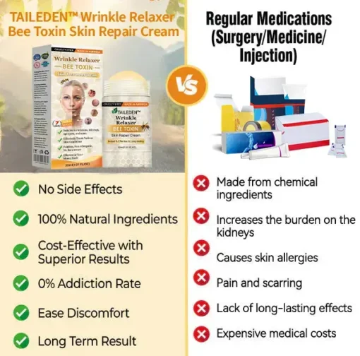 TAILEDEN™ Wrinkle Relaxer 𝐁𝐞𝐞 Toxin 𝐒𝐤𝐢𝐧 𝐑𝐞𝐩𝐚𝐢𝐫 𝐂𝐫𝐞𝐚𝐦 is safe for people who are allergic to bee stings. It is made with natural herbal extracts and bee Toxin, but does not contain any allergenic ingredients, making it safe even for those with bee allergies. ✅ It is FDA-approved in the U.S. and has been tested in clinical trials with thousands of volunteers to ensure its safety and effectiveness.