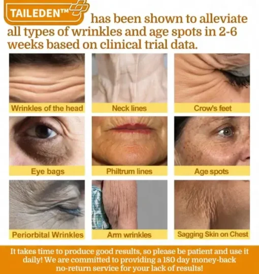 Most TAILEDEN™ users report visible improvements within 7 days. For deep wrinkles or stubborn skin issues, it may take 2-4 weeks of continued use. Everyone’s skin is different, so results may vary. However, if you’re not satisfied during the process, we offer a full refund.