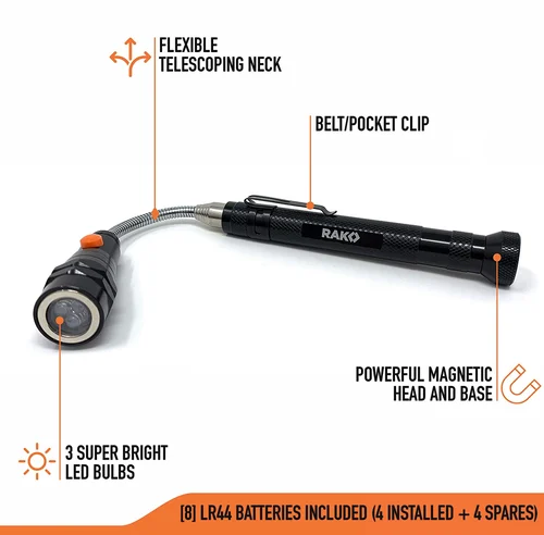 🎄🎁SUPER BRIGHT – Powered by pre-installed batteries, each telescopic tool magnet has 3 LED lights to provide visibility in dark spaces (spare batteries included). The grab wand is a life-saver in crawl spaces and attics.