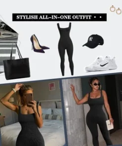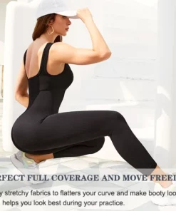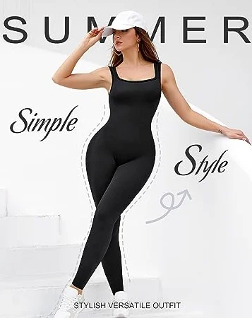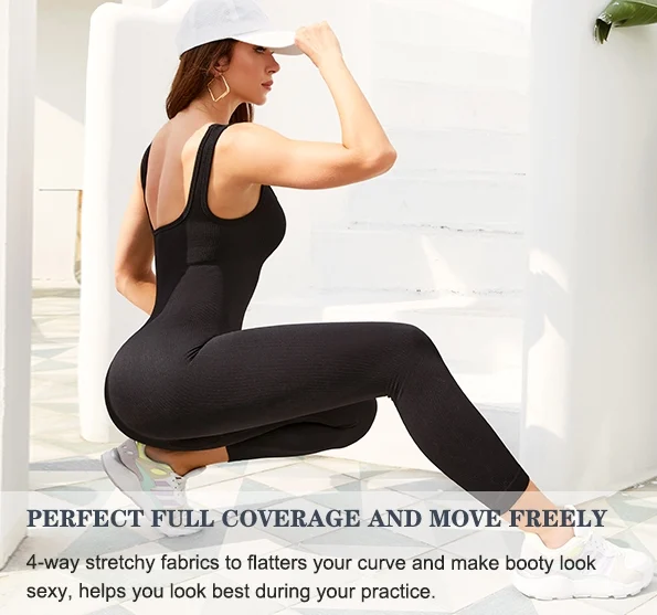 This jumpsuit comes in trendy and fashionable designs, making them suitable for both workouts and casual wear. You can look great while staying active. High fashion square-neck design to showcase your neckline.