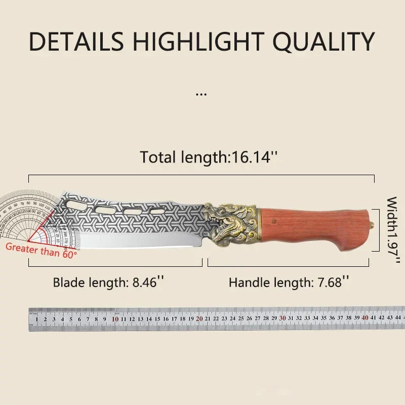 Traditional Heritage, Upholding the Tradition of Crafting High-Quality Knives,Forged from special high-grade steel, meticulously crafted by seasoned craftsmen through a thousand hammer blows and intense refining,Compared with mechanical cutting tools, the tools forged by hand have a longer service life, are sharper, and have more perfect details.