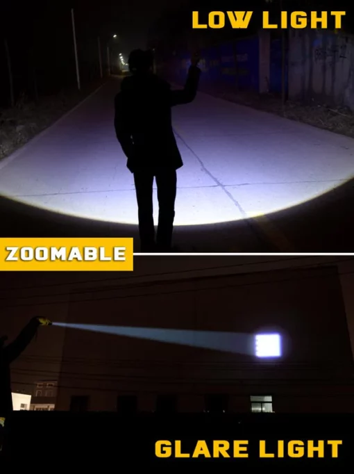 Top-class T6 LED Tactical Flashlight can sweep bright light over the length of about two football fields and reach up to 1200 feet away in the dark. Fully zoomable from wide to narrow beam.